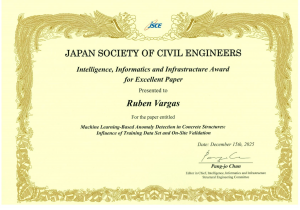 このたび、当社技術研究所 耐震構造グループのバルガス主任、池野グループ長らによる論文「Machine Learning-Based Anomaly Detection in Concrete Structures: Influence of Training Data Set and On-Site Validation」が、2025年「AI・データサイエンス論文賞(土木学会 構造工学委員会)」を受賞いたしました。本論文は東北大学、大分工業高等専門学校との共著によるもので、AI・データサイエンス分野における革新性・将来性・社会性が高く評価されました。また、同年11月に開催された「建設施工と建設機械シンポジウム(主催:一般社団法人 日本建設機械施工協会)」においても、本技術の内容が高く評価され、「優秀賞(学術ポスター部門)」を受賞いたしました。